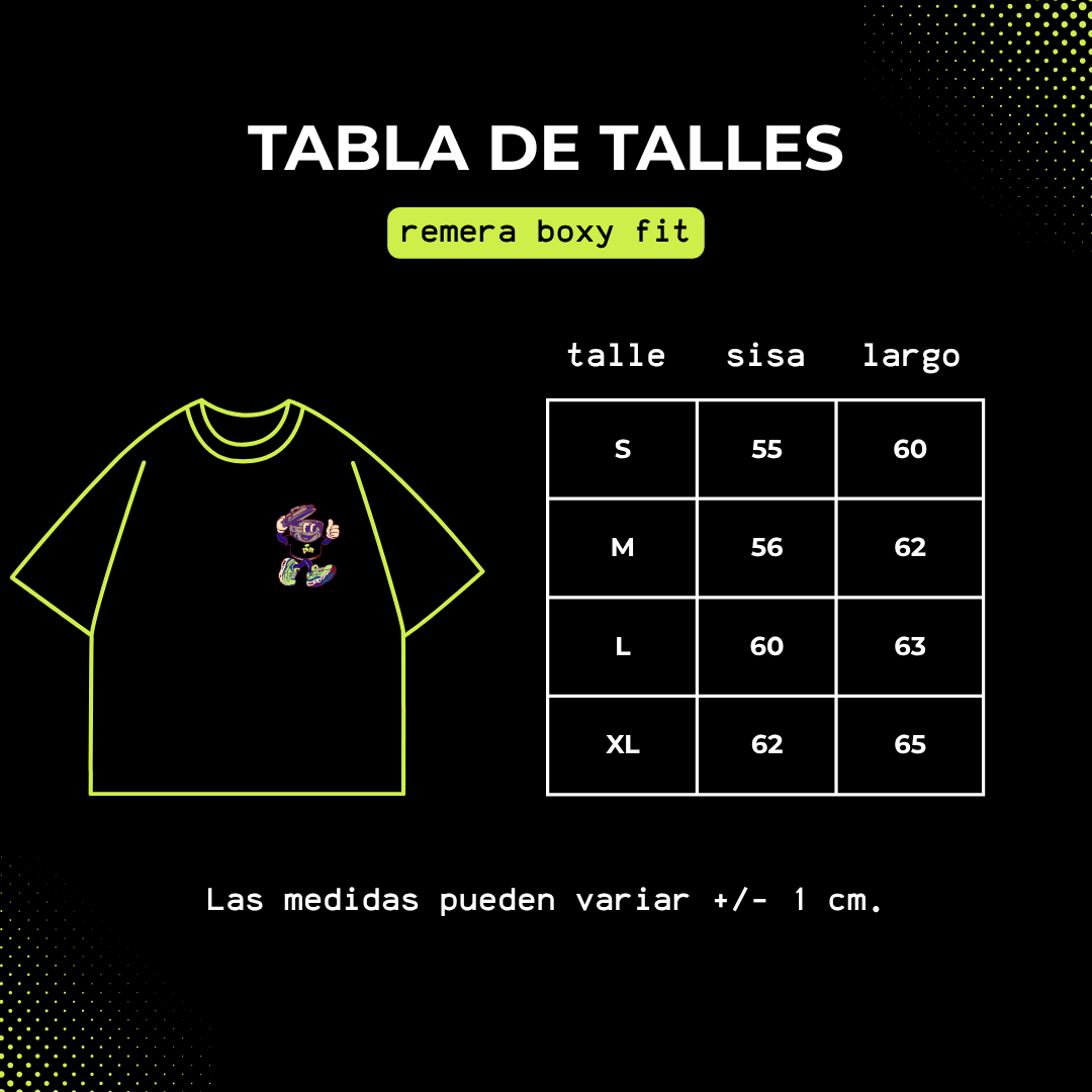 Cada remera puede tener leves variaciones por el proceso manual.