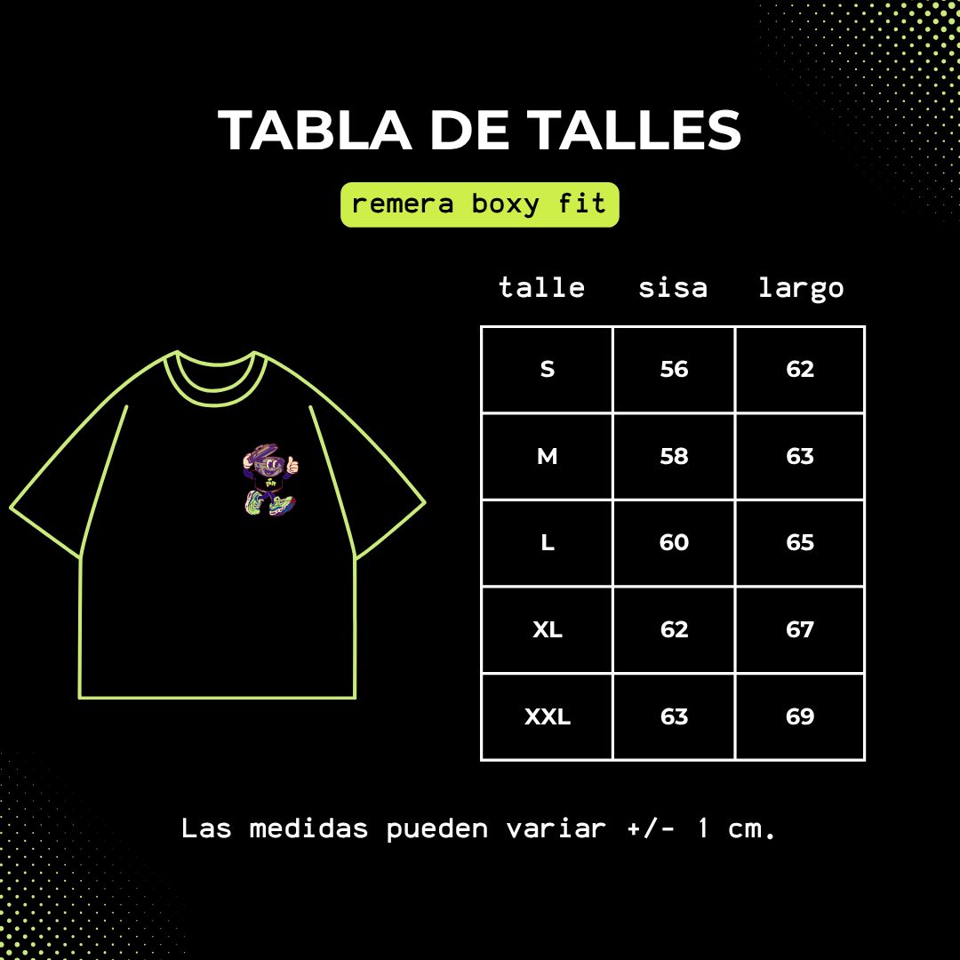 Cada remera puede tener leves variaciones por el proceso manual.